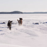 Some training with Kamu. The snow cover is finally firm enough that we can consider doing some training in the forests.