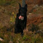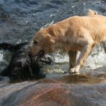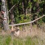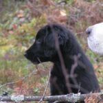 Kaksi nuorta noutajaa + keppi + iso pelto = lenkittävät itse itsensä